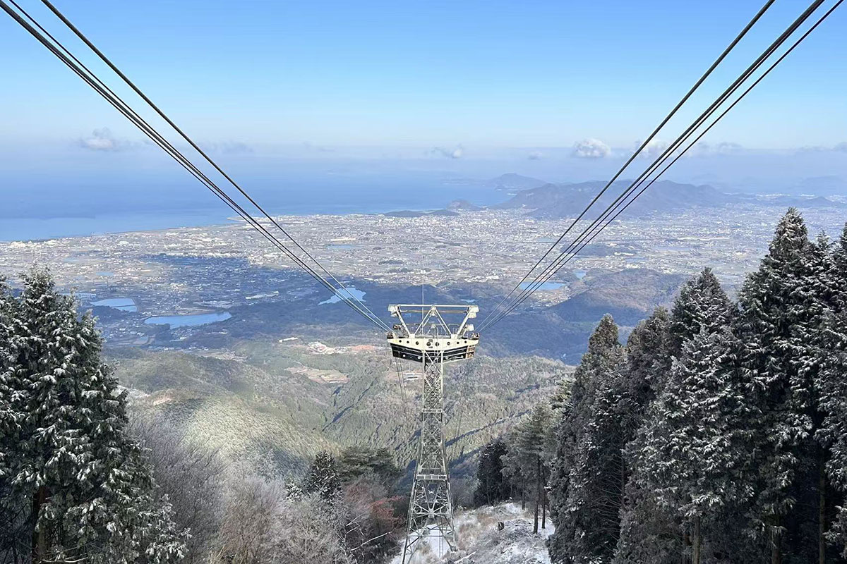 香川県の五色台と観音寺という瀬戸内海に面したあまり知られていない絶景巡りの旅へ行ってきました。屋島は有名ですが久しぶりに訪れるとやしまーるという新しい展望台ができていました。高松市内を眺めました。その後、五色台のホテルのテラスや部屋から瀬戸大橋や瀬戸内海が一望できます。そして観音寺では、ツアータイトルにある天空の鳥居として知られる高屋神社へ。階段が大変ですが、私たちは裏側から小型バスでのぼり、最後の坂をのぼると神社へ。日本、アジアの若い方たちが多くきていましたが、天気に恵まれ最高の景観でした。また香川と徳島の境にある雲辺寺には、ロープ―ウェイで山頂へ。絶景の天空のブランコがありますが、四国88ヶ所のお寺 雲辺寺もあります。この日はまさかの雪、そして樹氷を見ることができました。前日夜に雪が降ったそうですが、ほぼ誰もいない朝一番に 素晴らしい景色を見ることができました。唯一、天空の鏡父母ヶ浜は風が強く、きれいに見ることができませんでしたが、今度は違う時期に訪れたい、皆様に紹介したい場所となりました。
