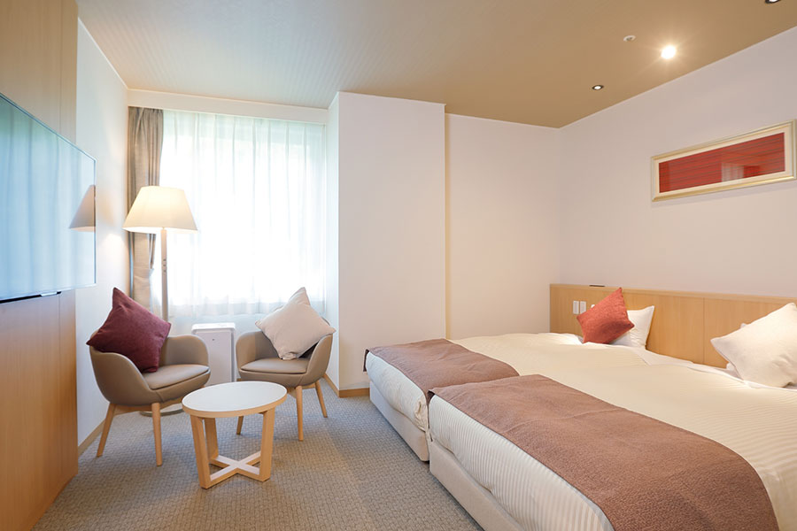 • お部屋は洋室で、1室2名様または1名様利用。3名以上の場合は和室になることもあります。